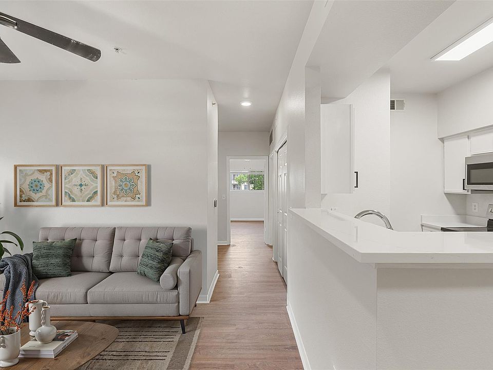 Fully updated and move-in ready, this beautifully renovated second-floor condo in North Austin’s gated Stoneleigh community offers modern style, comfort, and an unbeatable location just minutes from The Domain and Mopac. Step inside to discover a bright and inviting space featuring vinyl plank flooring replaced in June 2025, updated countertops, a freshly repainted interior, and a recently upgraded HVAC system for year-round comfort. The open-concept living area includes a versatile flex space—perfect for a home office or reading nook—while large windows fill the home with natural light. The spacious bedroom offers an oversized walk-in closet, and the private, covered balcony includes an additional storage closet for added convenience. Enjoy a full suite of resort-style amenities: a sparkling pool, modern fitness center, elegant clubhouse, business center, and dog park—all in a well-maintained community with 24-hour gated access and onsite management. A dedicated carport is also included. Ideally located near major employers like Facebook, Amazon, and VRBO, and just moments from Q2 Stadium, Walnut Creek Greenbelt, and Austin’s best shopping and dining, this condo delivers the perfect blend of modern living and everyday convenience.