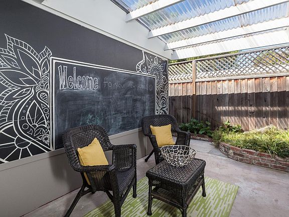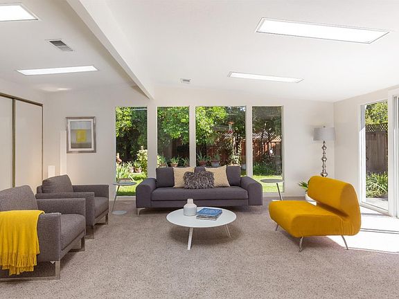 Spacious expanded home in the desireable Monta Loma Neighborhood, tucked away from street with private courtyard entry. The bright, open, and spacious living room features floor-to-ceiling windows with garden views, fireplace, large storage closets, and dining area adjacent kitchen. Updated kitchen features plenty of cabinets, and glass door to gardens and patios. The bonus room has glass door that opens to courtyard. Many amenities include inside laundry area, vaulted ceilings, skylights, fresh paint inside and out, central forced air heating and central AC, plenty of extra storage areas, including storage room off courtyard. The yards include patios, fruit trees and raspberry garden. Located near shops, parks, train station and commutes, Google, and not far from Downtown's library, Performing Arts Center, restaurants, year-round Farmer's Market, and train stations. Cul-de-sac location