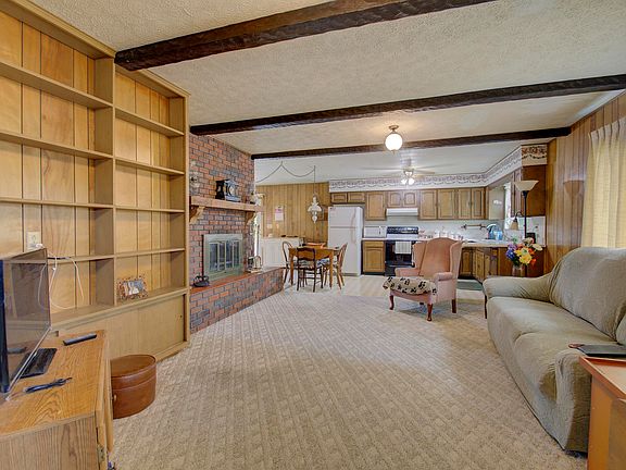 - Laminate Counters, Open Floorplan, Eat-in Kitchen, Bookcases, Built-in Features, Beamed Ceilings, Ceiling Fan(s)