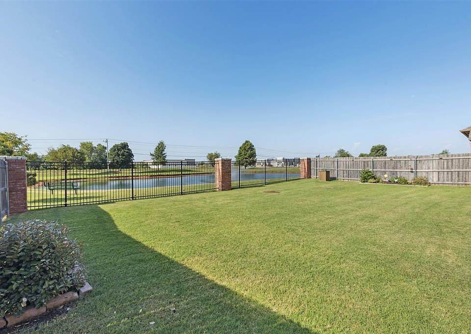 Beautifully updated home in Edmond’s desirable Robin Ridge Addition! Offering 2,171 square feet of living space, this versatile 4-bedroom (or 3 beds + study), 2-bath home features a split floor plan, spacious rooms, and modern finishes throughout. This home backs up and has gorgeous unobstructed views of the neighborhood ponds. The open living room flows from a true entryway and is ideal for everyday living or entertaining. The 4th bedroom with French doors at the front of the home makes a perfect office or guest space. The kitchen is a standout with granite countertops, a pantry, and generous storage. Tiled dining room leads to backyard with a covered patio and fenced yard for all your outdoor needs. The spacious primary suite includes an Australian closet, soaking tub, separate shower, and private water closet. Spare bedrooms have privacy, extra linen storage and full bath. You'll also love the 3-car garage and major updates like a brand new roof & gutters (2024), hot water tank (2024), brand new garage doors (2024), new exterior paint (2024), brad new HVAC (2022), new LED lights throughout, new cabinet storage and tornado shelter in garage, along with epoxy flooring, and much much more! Robin Ridge offers fantastic amenities including a community pool, clubhouse, basketball court, playgrounds, walking trails, and scenic ponds. Easy access to Turnpike, Hefner Parkway and Broadway Extension and located in Edmond Schools! Schedule your showing today!