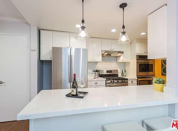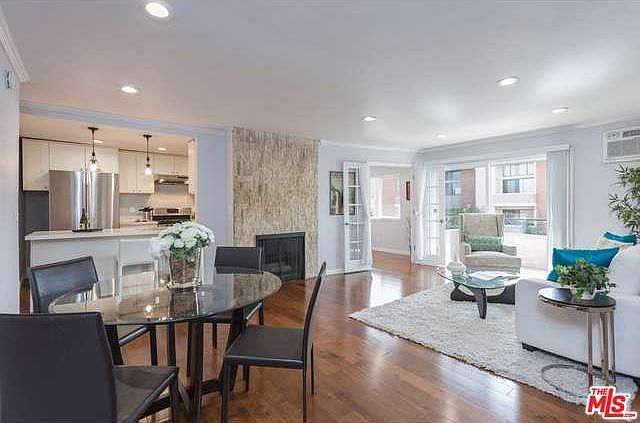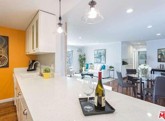 Offers due 3/17 @ 12 PM. Top-floor, turnkey residence ideally situated in the heart of West Los Angeles. This spacious, west-facing condominium features a completely remodeled modern kitchen with double ovens, quartz counters and breakfast bar opening to living room with fireplace, balcony, and dining area with room for office. Huge master bedroom with en suite bathroom and double walk-in closets, large second bedroom with hall bathroom and a 3rd bedroom with walk in closet adjacent to the living room. Also includes open views, hardwood floors, smooth ceilings, recessed LED lighting, inside laundry, 2 secured parking spaces (tandem), only 1 common wall & extra storage. Both bathrooms have been updated & have double sinks. Located in an attractive and updated building, with modern landscaping, beautiful courtyard pool, exercise room & low HOA dues ($380/mth). An exceptional opportunity, close to shops, restaurants, mall & new expo lin