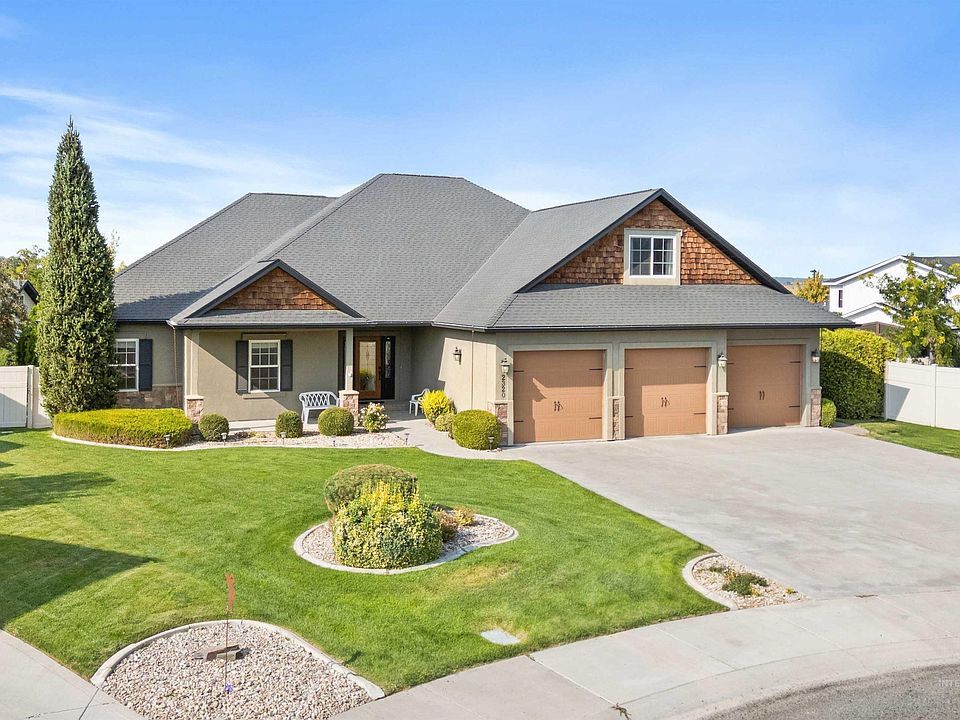 Welcome home to a custom-built masterpiece in one of Twin Falls' most sought-after neighborhoods near the canyon rim. This 4-bedroom, 2.5-bathroom home sits on an oversized 0.41-acre lot, offering both elegance and functionality. Step inside to discover stunning wood floors, solid wood doors, and an inviting gas fireplace in the living room. The spacious kitchen boasts granite countertops, ample storage, and a formal dining room perfect for hosting. The luxurious master suite features a large walk-in closet, dual vanities, a soaker tub, and a step-in tile shower. Upstairs, the bonus room with a half bath offers endless possibilities—guest retreat, hobby space, playroom, or home theater. Outside, the charm continues with a large covered patio ideal for entertaining, a meticulously maintained lawn, RV parking with hooks ups, and an 18x21 shop with heating & cooling with attic storage. Enjoy the neighborhood’s proximity to the canyon rim and access to scenic walking trails. A must see.