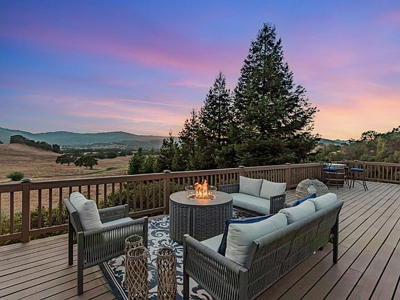 Step inside and experience designer craftsmanship throughout. The updated kitchen showcases stainless steel appliances, crisp white cabinetry, and striking leathered quartzite countertops. A spacious formal dining room, gated courtyard, and multiple living areas make this home ideal for entertaining. The expansive deck and patio provide the perfect backdrop for hosting guests while enjoying panoramic valley views.