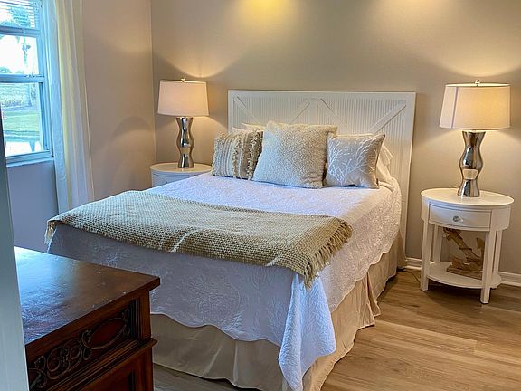 This 2 Bedroom/2 Bath "move-in ready" unit offers gorgeous views from the screened lanai and an immaculate interior with new luxury vinyl flooring throughout, eat-in kitchen and breakfast bar, stainless appliances, and laundry closet with stacked washer and dryer. The rear Master Suite has a large bath with dual vanities, extra storage and a walk-in closet. Pet friendly under 15 pounds.