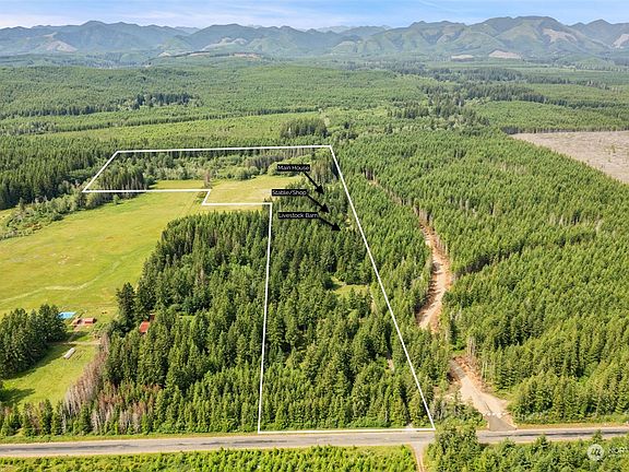 Discover this 41 acre Western Mason County ranch that offers it all! Live luxuriously in this nearly new, high-end 2912 SF one-level Craftsman and enjoy all the benefits of country living. The property is set up for livestock and horses, featuring two huge barn/shop structures and several outbuildings. View elk, deer, and wildlife, and overlook pastures, a creek, and sunsets from your living room. The home features 9' ceilings, oak floors, a spacious chef's kitchen, a formal dining room, and a den that could be a bedroom. Beautiful primary suite w/ soaking tub and tile shower. Summer kitchen, composite decks, and detailed craftsmanship throughout. Fertile pastures, fenced & cross-fenced, woodlands, and a salmon stream. A rare opportunity!