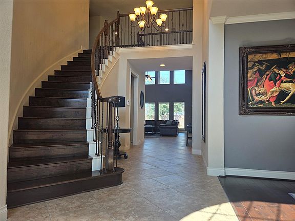 Beautifully upgraded home on a quiet cul-de-sac in sought-after Ventana Lakes! Enjoy peaceful views next to a picturesque lake with a charming water feature. This spacious 4,188 sq ft home features an open layout, high ceilings, and elegant hardwood floors in the primary suite, dining room, study, staircase, game room, and hallway. Gray accent walls throughout the home add contrast and warmth, and the kitchen shines with stainless steel appliances, extensive cabinetry, and a large island. The primary suite provides a relaxing retreat with a spa-inspired bath and two generous walk-in closets. Upstairs includes a large game room and media room. The backyard is a true oasis, with a white travertine stone patio, full brick fencing, and lush sago palms that add tropical charm. Zoned to top Katy ISD schools and close to major highways, shopping, and dining, this home offers style, space, and serenity—schedule your tour today!