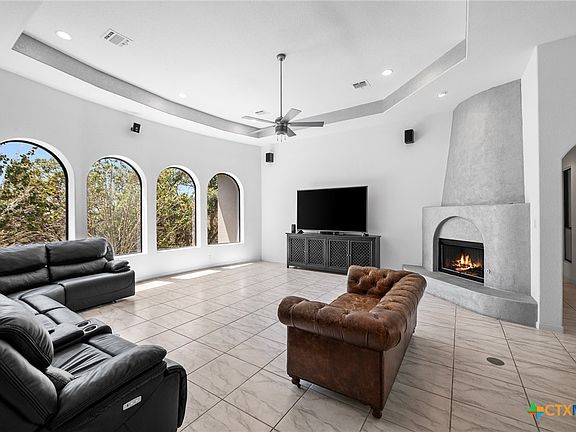 A beautiful one story home nestled in the exclusive gated community of Fossil Ridge. This beautiful home sits on a 1.29 acre lot surrounded by mature trees and natural landscaping. Private entryway patio offers a built in gas grill and kitchen space. The living room features high ceilings, surround sound speakers, views of the covered outdoor patio, and a gas fireplace. The modern kitchen features plenty of storage and cabinet space, an island with built in storage, stacked oven and microwave, custom designed vent hood over the gas range, and spacious bar seating. The dining area features built in storage/buffet and views of the back yard and covered patio. The spacious Master Bedroom features views of the backyard with a very spacious Master bathroom, complete with his and hers vanities, soaker tub and walk-in shower. The walk-in shower is generously sized and offers built in storage. Last but not least, this master has a private balcony to enjoy all the natural scenery. The second bedroom is not only spacious and welcoming of natural light, it has built in storage and a large closet space. This room is joined with a jack and jill full restroom to the third bedroom. The third bedroom is spacious, has a large closet, and windows to view the natural landscape. There is an extra room across the bedrooms, available for storage, guest room, or office space. This spacious home offers two air conditioning units, port for pest control injection treatment, outdoor speakers installed, outdoor covered patio with fans. The backyard highlights the natural landscape with a fire pit area and endless possibilities for entertaining or enjoying quiet time secluded in the scenery. The home features a two-car garage with plenty of space near the garage entry to park multiple vehicles. The garage hosts plenty of workshop space.