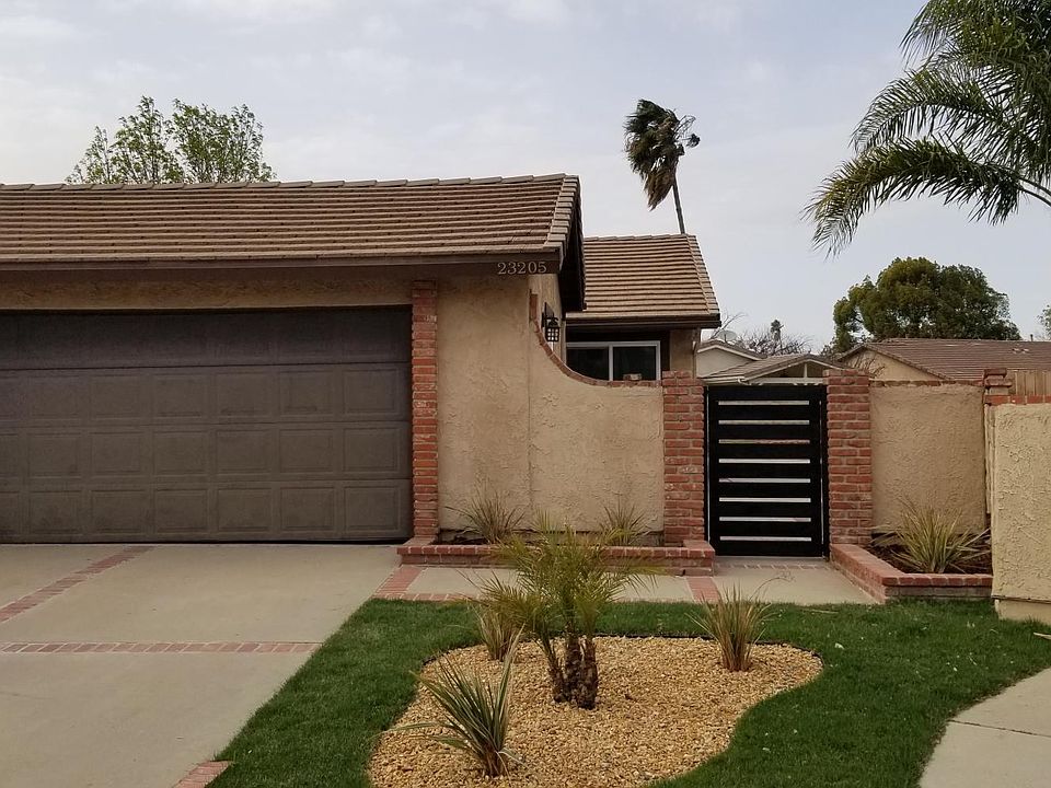 LOCATION LOCATION LOCATION! This completely remodeled TURNKEY 3 bedroom, 2 bathroom garden home features 1,051 square feet of living space on a large 4,558 square foot lot. Upon entering, you will be greeted with an open floor plan - as the living room enters into the large kitchen and dining area. The kitchen features recessed lighting, quartz counter tops, and new Whirlpool stainless steel appliances - stove /oven, microwave & dishwasher. The newly laid laminate flooring throughout is complimented by the freshly painted walls and newly installed double paned windows and molding. The recessed light lined hallway leads you to two generously sized bedrooms with new blinds, and LED ceiling fan which share a remodeled hall bathroom which houses a bathtub, new towel/toilet racks, vanity, mirror, faucet, and light fixture. The master bedroom suite not only has mirrored closet doors, but a new double paned sliding door, fan, and an attached private bathroom with a new vanity, mirror, light, toilet, and glass shower doors. An entertainers large backyard and side yard is highlighted by freshly laid decomposed granite and luscious grass and hard scape. Located near community parks and pool, SCV paseos, Westfield Mall, Henry Mayo Hospital, and easy access to the 5 and 14 freeways.
