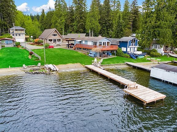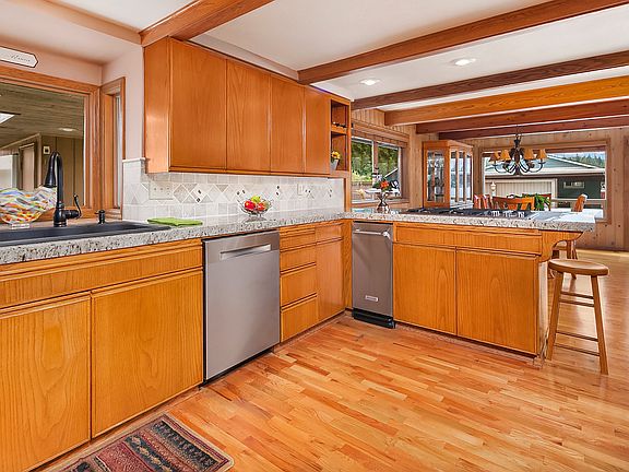 Welcome to paradise w/the best of lake living. Beautiful home featuring cathedral ceilings, open beam living room & loft, box beam details in the kitchen & dining area, JennAir appl package w/5burner range, microwave, & oven w/warming drawer. Tile entry, office nook, main floor br and remodeled bath. Gas fp, covered patio, central vac, bonus room off loft (3rd bedrm), master bedroom loft, & so much more! Detached 2 car garage w/shop + tons of storage (1500+sf)! Newer roof on both. Hottub stays!