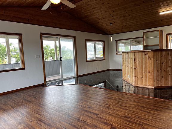 Two-story Hilo home available for long term rent. This five-bedroom, three-bathroom house has fabulous outdoor living area and a mostly gravel rock yard. The main living area upstairs boasts an extended under roof lanai, large living-dining-kitchen area, three bedrooms and two bathrooms. Downstairs is another two bedrooms and a bathroom, along with a common area, kitchenette, and laundry room (with hookups only). An HBR application must be on file to schedule a showing. Tenant is responsible for utilities; stove and water heater are propane gas. Outside pets may be considered. Please visit hbr.managebuilding to submit the Hilo Bay Realty application.