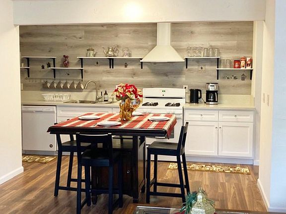 Two-story (middle) unit #B with fully equipped kitchen, living room/bedroom furniture, wood stove, washer/dryer, and spacious garage. Located in the village center surrounded by beautiful mountains. Walking distance to the park, tennis court, pool, golf course, clubhouse, stores, and restaurants. Much more spacious in person. Why not schedule a tour? Rent $2,300.00. Deposit $2,300.00. No pets. The tenant pays for utilities.