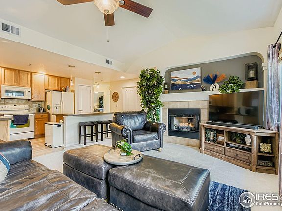 Set in a super quiet neighborhood, this spacious condo offers vaulted ceilings, an open floor plan, and incredible functionality for everyday living. The expansive primary suite with walk-in closet and en suite bath is complemented by a large second bedroom and a dedicated office, giving you the flexibility for guests, work-from-home, or hobbies. The private balcony provides a peaceful retreat with a peek at mountain views in the winter, while the community enhances your lifestyle with dog-walking stations, little libraries, and plenty of green space. With a cozy fireplace, attached garage, abundant storage, and thoughtful design that makes every space truly usable, this condo blends comfort, convenience, and versatility in a way that's hard to find.