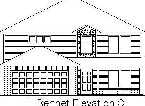 The beautiful Bennet plan is rich with curb appeal with its cozy covered porch and front yard landscaping. This two-story home features 4 bedrooms, 2.5 bathrooms, a bonus room upstairs, and a large living area downstairs. The master suite is on the first floor and features 2 walk-in closets. The fully equipped, energy-efficient kitchen has generous counterspace and a pantry. Learn more about this home today! *Photos are of similar model