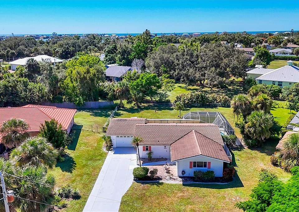 Welcome to Sorrento South, a deed-restricted community west of Tamiami Trail in Nokomis. This two-bedroom, two-and-a-half-bath, one-car garage pool home offers 1,545 square feet of interior living space on a 15,500-square-foot oversized and fenced lot. Offered as-is, this residence presents a substantial opportunity to transform and personalize the interior and exterior to reflect your vision of a dream home. An open floor plan includes a spacious great room that flows into a screened lanai with a heated pool under a soaring enclosure. The kitchen features stainless steel appliances, a breakfast bar, and a seamless connection to the living and dining areas. Wide views of the expansive backyard from the covered and screened lanai enhance the outdoor living experience. Residents enjoy low annual homeowners association dues of $300 and access to community amenities, including the nearby Bayshore Executive Golf Club and marina. Private boat slip rentals may be available. The community permits golf cart and bicycle access to Nokomis Beach, as well as proximity to waterfront dining, boutique shopping, and cultural attractions on Venice Island, Siesta Key, and downtown Sarasota. Set within an established, upscale neighborhood, the location offers convenient access to Interstate 75 and major regional airports. With year-round sunset views and proximity to beaches, golf and coastal recreation, schedule your showing now.