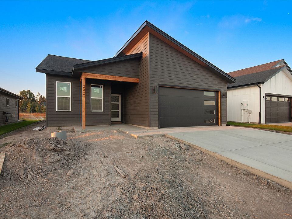 Welcome to 2321 Jefferson in the vibrant city of Kalispell, Montana. Home is appox. 3 weeks from completion. This single-family residence offers a comfortable living space of 1494 square feet, spread out in a single story. As you step inside, you'll be greeted by a spacious and inviting layout. The home features three generously sized bedrooms, each designed to provide a peaceful and private retreat. The attached two-car garage ensures ample space for your vehicles and additional storage. The home's exterior boasts a modern and stylish design, featuring a combination of materials and textures that create a visually appealing facade. The property is situated on a desirable lot, providing ample outdoor space for recreation and relaxation. This property is conveniently located offering easy access to local amenities, shopping, and entertainment options. The city is known for its stunning natural beauty, with its close proximity to Flathead Lake and Glacier National Park.