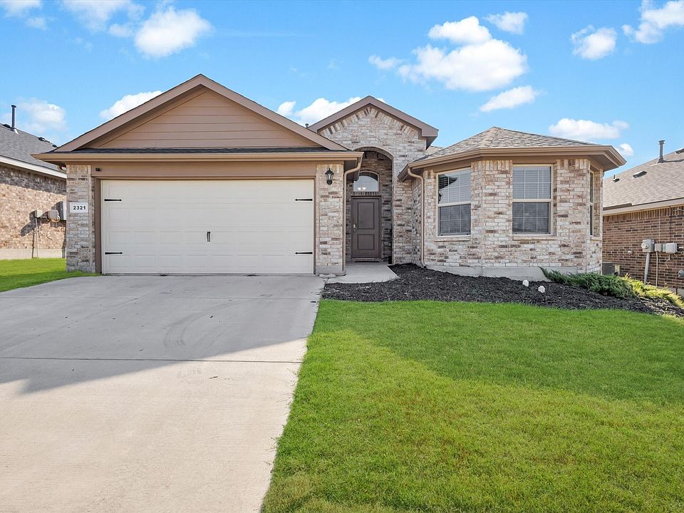 Beautifully kept 2021 DR Horton home in the Highlands at Chapel Creek. This one-story layout offers 4 bedrooms, 2 full baths, 2-car garage and an open floor plan that makes everyday living easy. The kitchen is the heart of the home with granite countertops, a large island with bar seating, gas range, and plenty of cabinet and pantry space. The living and dining areas flow together seamlessly, and the split bedroom design gives the primary suite added privacy. The spacious primary includes a walk-in closet and bathroom with dual sinks. Tile flooring runs throughout the main areas of the home, with carpet only in the bedrooms. Additional highlights include a separate laundry room and energy-efficient features. Outside enjoy a covered patio, full sprinkler system, and private backyard. Conveniently located near shopping, dining, major highways, and just minutes from Downtown Fort Worth.