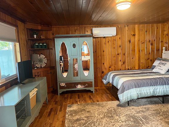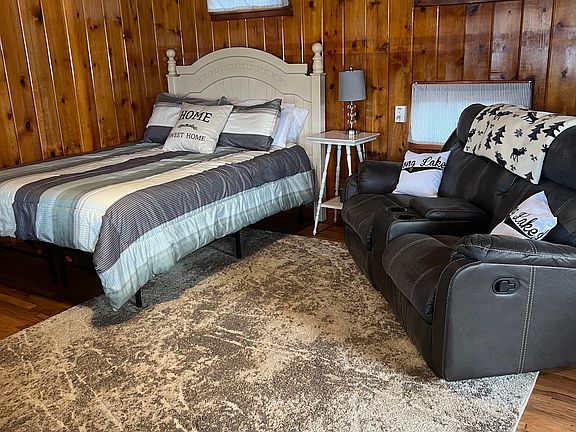 Entire LAKEFRONT studio cabin. FULLY FURNISHED with a comfy queen bed, reclining couch, tv, full kitchen, all the amenities you will need for your stay! Washer and dryer on property in an outbuilding just outside of the front door.