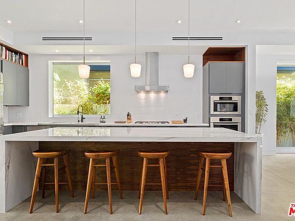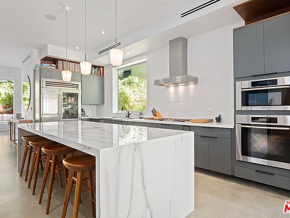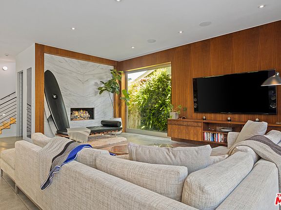 Warm modern home with incredible scale and designer finishes situated in the Silver Triangle of Venice Beach. Meticulously remodeled in 2018, sitting just behind the historic Venice Canals & close to Abbot Kinney's trendy shops & restaurants. Beyond the secluded front gate, you're welcomed by a grand deck with built-in fire pit & seating area, outdoor kitchen with BBQ & space for al fresco dining. Retractable glass doors combines the outdoor space with the open living room. Chef's kitchen with Miele & Sub-Zero appliances with sunlit dining area create the ultimate entertaining experience. Enjoy two expansive rooftop decks with 360 degree views of the mountains and the city. The east deck offers a fireplace, large island with sink, fridge with ice chest & oversized hot tub. The west deck has spectacular sunset views & ample space for relaxing. This home features a high-end Control 4 system with capability to control speakers, security system and automatic blinds.
