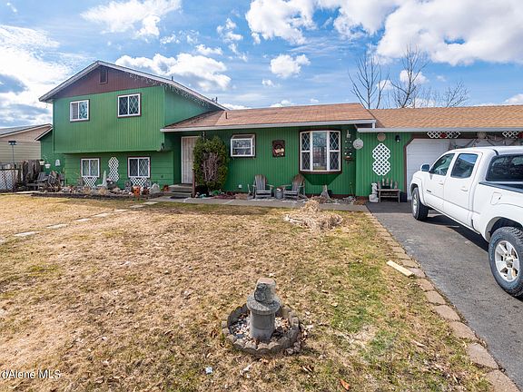 This spacious multi-level home with walkout basement features 1980 square feet of finished living space, including 4 bedrooms and 2 bathrooms, on an oversize .31 acre lot, and in a convenient, central Post Falls location close to schools and shopping. The large lot has substantial room for RV and car parking, and the back yard features three outbuildings including a small shop with power, a large, attached storage room, and a garden shed. There is also a large garden area, apple and plum trees, and it's plumbed for a hot tub. The main level offers a large living room with picture windows, a sunny dining area with bay window, and French doors to an open deck. Situated on a cul-d-sac for minimal traffic and close to Post Falls High School. The price reflects deferred maintenance, but house has good bones and great potential.