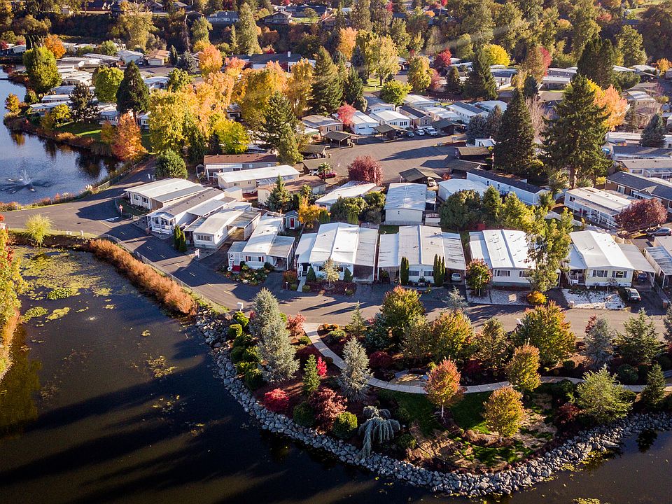 Check out this lakefront beauty in Roguelea Estates. Grants Pass' premier 55+ manufactured home community sitting right along the mighty Rogue River. Living in this community you will have access to a private park along the river where you can watch the famous jet boat races, enjoy river wildlife, and have picnics with your friends and family. The beautiful lake offers trout and bass catch and release fishing. The Clubhouse offers a variety of activities and can be reserved for private parties. About the home-This two bedroom, two full baths, spacious home is as cute as it is comfy! You will love the large primary bedroom and bathroom with double sinks and soaking tub. The covered porch is perfect for hanging out or enjoying the sunrise. The lot has a huge fenced back yard and the park does allow pets. Now is the time to make the move! Call to see this beauty today!