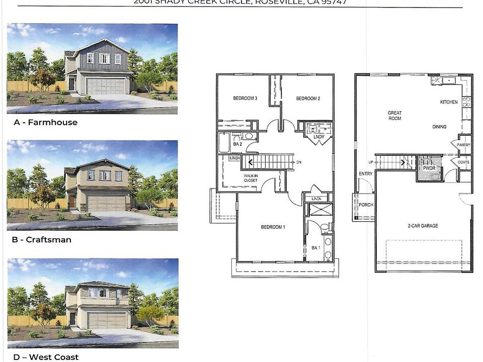FANTASTIC brand-new two-story floor plan with 4 bedrooms, 2.5 bathrooms, and a 2-car garage. Features include a spacious open-concept great room, and a walk-in closet in the primary bedroom. ome is equipped with laminate flooring and carpet, granite counter tops, and shaker-style cabinets. Also included in the Home is a Connected® Smart Home System that includes some or all of the following Internet-connected devices: a video doorbell, programmable thermostat; a door lock; a smart light switch; and a touchscreen smart home control device. All renderings and floor plans are artists' onceptions and not to scale. Dragonfly is a solar-mandatory community. Dragonfly at Winding Creek is lose to shopping, walking trails, and located in the Roseville School District.