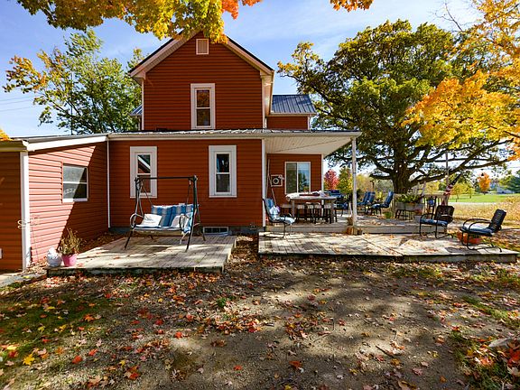*Seller offering $15,000 in lender approved credits!! This restored farmhouse has 4 bedrooms and 2 full baths, first floor laundry, large eat-in kitchen/sitting room. Beautifully restored original woodwork, stairway and pocket doors between living room and dining room. Two car attached garage and huge pole barn (40X50) with two 10X10 overhead doors and half bath. Barn will store 5-6 cars, tractors or whatever you choose. Huge concrete driveway, new metal roof 2022, newer vinyl siding 2019, new water heater 2022. Two furnaces (propane and back up wood burning furnace), vinyl tilt in windows, original front door with skeleton key. Water source is a well, but Delco is at the road. If you're looking for peaceful, country living, this home is the one for you!