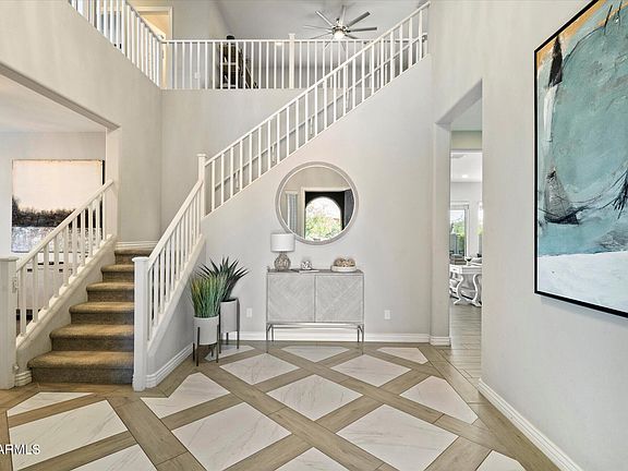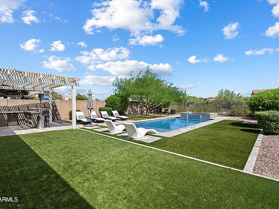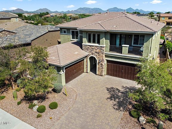 Sophistication & style can be seen throughout this beautifully appointed & highly upgraded home in the exclusive gated community of Sanctuary. Situated on a premium 10,000+ SF lot backing to NAOS w/mountain views- these lots don't come up often. Enter into a light-filled foyer w/soaring 2-story ceilings. Beautiful chef's kitchen showcasing stacked cabinetry, large island, built-in fridge, luxury appliances, butler's area, & large walk-in pantry. Kitchen flows seamlessly into the dining & large family room w/custom cabinetry. A formal dining room offers the perfect setting for holidays & special gatherings. The downstairs ensuite bedroom provides an ideal retreat for visiting family & guests. Upstairs, a generous loft serves as a second living area or play space. Spacious primary suite w/private balcony, Primary bath w/luxurious walk-in shower, & large walk-in closet. Three additional upstairs bedrooms are all generous size w/one an ensuite. Enjoy incredible outdoor entertaining in your resort-styled backyard w/expansive covered patio, sparkling heated pool/spa, built-in BBQ, extended travertine pavers for added entertaining & lounging space, & synthetic grass for easy maintenance. Community features pool, clubhouse, work out facility, several parks & kids playground. Located nearby Desert Ridge Marketplace, High Street, Mayo Clinic & easy access to 101. Desert Ridge features top rated schools.