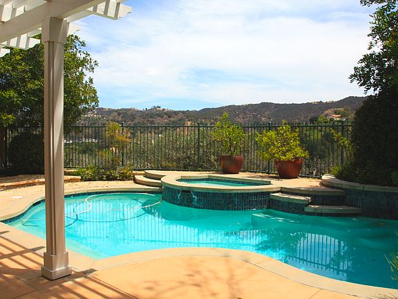 Magnificent Mediterranean POOL & VIEW estate in highly desirable 24-hour guard gated community of Bellagio! This perfect open floor plan with high ceilings offers 3 bedrooms upstairs and a HUGE bonus room that possibly can be split into 2 more rooms, plus 1 bedroom downstairs! Granite center island kitchen with breakfast nook opening to a spacious family room with fireplace! 3 car garage! Master suite with fireplace and balcony overlooking a private VIEW yard with pool/spa & large covered patio! Award wining Las Virgenes Schools! Close to shops & dining of The Commons, Calabasas Lake and much more!!!