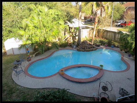 BACK YARD OASIS! Perfect outdoor entertaining space - beautiful pool, waterfall & spa with additional yard area for pets. Amazing 3 bedroom family home with formal dining, gameroom or media room up. Home features and recent Laminate wood flooring in kitchen, den & one bedroom. Faux wood blinds. Exterior paint 2015, interior paint 2016. Stainless steel appliances. Surround sound in family room, and security cameras stay. Large storage shed with concrete floor as well as dog pen in backyard.