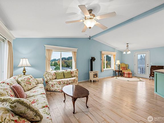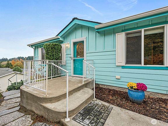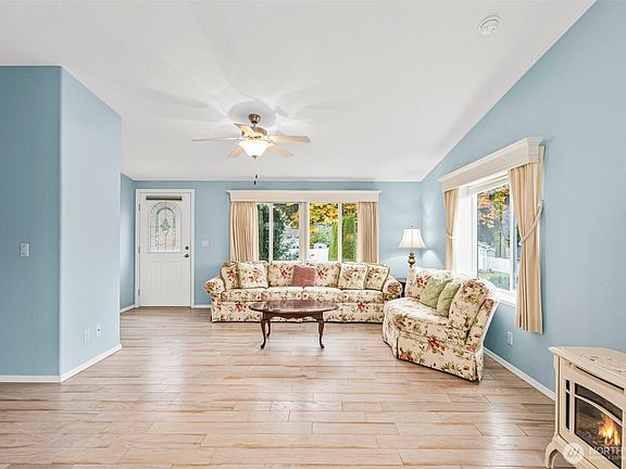 Welcome to Klahowya Estates, a highly sought after gated 55+ MH community in Tumwater. This well-maintained 2017 Skyline Westridge model is thoughtfully designed and just as cute as a button! The welcoming 1188sqft open floorplan includes hardwood floors, large primary bedroom with newly updated en-suite bath with walk-in shower, fresh interior paint throughout, gas range and fireplace, walk-in pantry, multiple storage closets and customizations. Sitting on a large corner lot in the upper portion of the park, the gorgeous landscaping provides colorful foliage to enjoy all year from your patio. Poured concrete walkways allow easy access to the property. Spacious 2-car garage with room for additional storage.