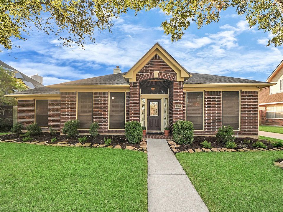 Welcome to this attractive one-story home in desirable Pecan Grove. Featuring a split floor plan with 3 bedrooms with private study as a 4th bedroom option & 2.5 baths, this property blends comfort & functionality. Inside, you will find a formal dining room with direct access to the kitchen The spacious family room is highlighted by a cozy fireplace with granite accent, while the island kitchen boasts abundant cabinetry, extensive counter space & even a built-in desk area. The owner’s retreat provides a private escape with room to unwind, featuring an ensuite bath with dual sinks, separate shower, soaking tub, & walk-in closet with dual entries. Additional highlights: wood laminate floors, plantation shutters, all brick exterior, sprinkler system, & hardwired security system w/ ext cameras. Recent updates—roof (2019), AC (2023), water heater (2018). Zoned to Fort Bend ISD. This home combines timeless comfort & charm. Ideally located near everyday conveniences—schedule a showing today.