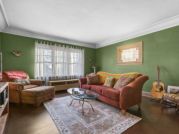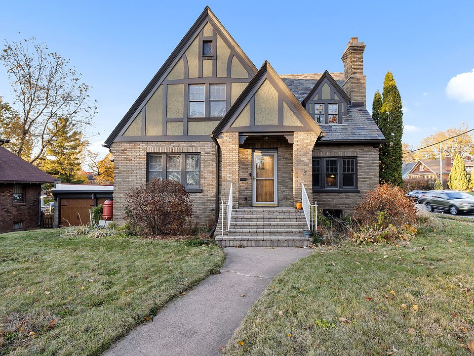 All-brick Tudor home with a timeless slate roof, centrally located just minutes from downtown Rockford, near two major hospitals and I-90. This charming home features 3 bedrooms, 1.5 bathrooms, and an attached 2-car garage. Gorgeous woodwork, arched doorways, and built-ins are found throughout. The main floor offers a spacious living room with a gas fireplace and built-ins, a formal dining room with hardwood flooring, a family room with hardwood floors and built-in shelving, a half bathroom, and a kitchen with a large walk-in pantry. A beautiful banister and staircase lead upstairs to three spacious bedrooms with hardwood flooring and a full bathroom showcasing original vintage pink-and-black tile. The primary bedroom includes two walk-in closets and a cedar closet for added storage. Enjoy the brick sunroom with ceramic flooring and the durability of the stunning slate roof. The home also includes a full basement with exterior access, and the attached 2-car garage features a newer flat roof.