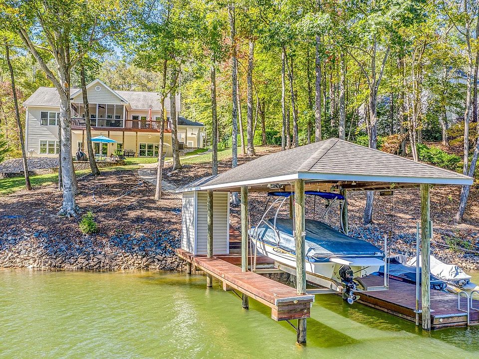 This immaculate custom built Lake home has lots of privacy & park-like setting. Approx. 3,364 sq. ft. situated on 2.64 acres & 141.67' of waterfront. Great Room w/ fireplace & built-in bookshelves, Remodeled kitchen w/custom cherry cabinets w/new granite countertops, tile backsplash, stainless appliances, gas cooktop, double ovens,& new farmhouse sink and large walk-in pantry, screened in porch, gentle walk to the boat house, a 2 car oversized garage w/ covered breezeway from house. large storage area . Outdoor entertaining area w/grill, lower level patio, Main floor master suite & laundry, exterior outlet for a generator & generator included, exterior gas line for grill, lawn sprinkler system can be controlled by wi fi. Covered boathouse with cabana, wifi and 2 jet ski ports