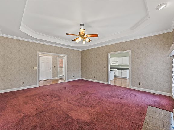 - Features: Ceiling Fan(s), Carpet, Fireplace, Tray Ceiling(s)