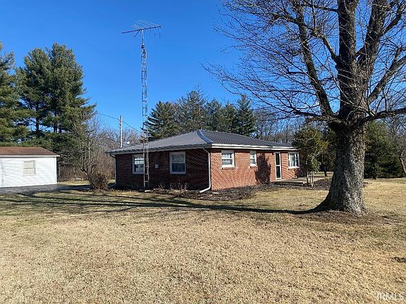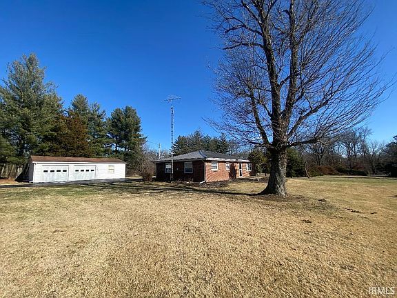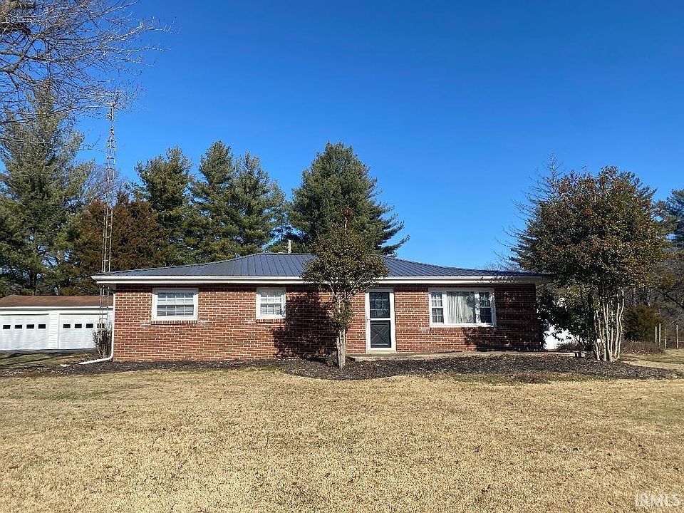 All Brick Ranch Home on 1.25 acres with over 1200 sq.ft. Three bedrooms and 1 bath. Beautiful, coffered ceilings thru-out the home. Living room has gas, vent-free fireplace with floor to ceiling stone and entertainment shelves on one wall. Eat-in kitchen w/gas stove. Dedicated laundry room with door to bathroom and kitchen. Knotty Pine walls in one bedroom. Replacement windows. New flooring. Metal roof. Sunroom off kitchen. Two car detached garage with workshop area (could be turned into 3rd car bay). Pole barn & Garden Shed. Asphalt driveway. Huge lush yard with sunny garden area. Great neighborhood on Hoosier Rd. minutes from Linton. Home qualifies for 100% financing. Immediate possession. Pre-approval for all showings.