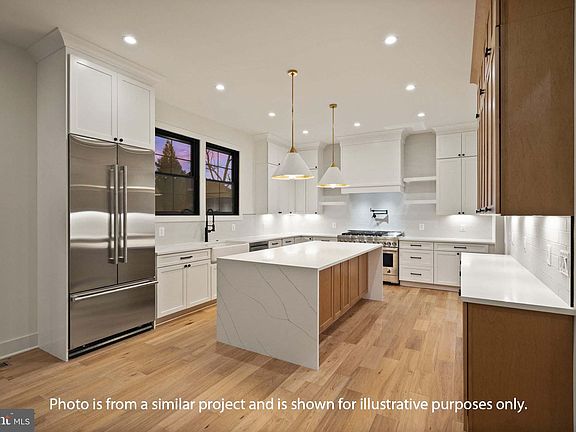 Meet the builder and discuss options! Off-site open house at 6301 31st St N Arlington, VA 22207. Saturday, November 22nd 1-3 PM. To be built by award-winning BODE Residential, this luxury English cottage–inspired home is scheduled for Fall 2026 delivery and offers up to approximately 6,000 square feet of finished living space when optional upgrades are added. Located at 2322 N Nottingham Street in the highly desirable Leeway neighborhood of Arlington, the base home includes 4 bedrooms, 3.5 baths, and 3,867 sq ft of beautifully designed living area on an exceptionally rare 10,000 sq ft private lot in 22205. The planned front elevation features a stone and brick façade with taupe-colored windows, steep rooflines, wood shutters, and an arched front entry that together create timeless curb appeal. Inside, warm greige walls, site-finished hardwood floors, and designer lighting set an inviting tone. The gourmet kitchen will include GE Café appliances, shaker cabinetry, a custom stained wood range hood, upgraded dovetailed soft-close cabinetry, warm Taj Mahal–inspired MSI quartz countertops, and a European zellige tile backsplash. A flexible study or playroom offers adaptable space for work or family needs, and the mudroom includes built-in cubbies. Upstairs, the primary suite will feature a spa-style bath with a freestanding tub, gold finishes, and a shower with both a rainhead and handheld sprayer, along with a fully built-out walk-in closet. Secondary bedrooms are significantly larger than typical for the area. Plush carpeting is planned for secondary bedrooms, with hardwood in the hallway. Additional features include solid core 3-panel interior doors, 7 1/4 inch upgraded base trim, crown molding in the dining room, a reach-in pantry with wood shelving, taupe casement and double-hung windows, tankless water heater, energy-efficient HVAC, a combination of spray foam and batt insulation (including between floors), Cat6 wiring to each living area, and three ceiling points for wireless access points. A gas line will be roughed in at the rear for a future grill, and a basic landscaping package is included with upgrade options available. Buyers may still customize selections and elect to add a screened porch, finished loft, and finished basement, which together can expand the home to nearly 6,000 sq ft. Situated within walking distance to Westover, grocery options, restaurants, and neighborhood favorites, and served by top-rated Tuckahoe, Swanson, and Yorktown schools. The deep, private lot, with no home allowed to be built behind it, provides rare outdoor space for this part of Arlington. This is a unique opportunity to personalize a luxury new construction home crafted with BODE Residential’s signature quality and character Interior photos are from another home recently built by BODE Residential.