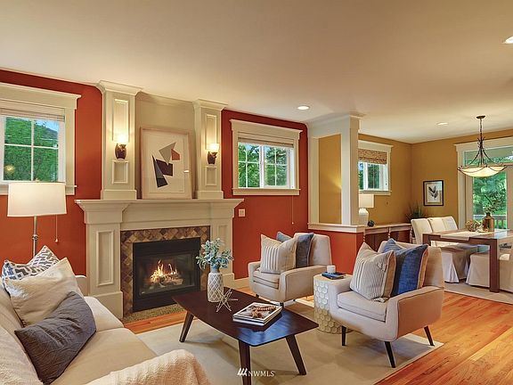Contemporary design meets Craftsman-era styling in this marvelous newer construction near the heart of Wedgwood featuring a gracious living room with a gorgeous window seat, a mantled gas fireplace framed by tile and granite, hardwood floors, a niche-framed entry to the formal dining room - with French doors to a lovely covered back deck, a remodeled kitchen with quartz countertops, custom cherry wood cabinetry, stainless appliances, a terrific center island with breakfast bar eating space, a family room, a primary suite with a 5-piece bath and walk-in closet, 5 bedrooms and 3.5 baths with 4 bds on one level, a daylight lower level with a large recreation room, a slate patio with hot tub and two-tiered yard, a 2 car garage and much more.