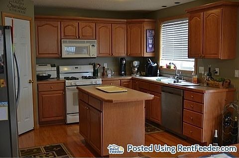 Beautiful home sits on a lot-and-a-half with sprinkler system. Main level features open floor plan with hardwood floors in entry, kitchen & dining areas. Family room w/ marble fireplace. Kitchen w/ maple cabinets, gas stove, island and build-in desk area. Vaulted master suite is oversized with WIC and features private bath w/ dual vanity, garden spa tub & separate shower. Basement is finished with 1 BR, full bath and features a large entertainment area with field stone fireplace and wired for home theater. Oversized deck with pergola out back overlooks brick patio. Come and see this beautiful home yourself. No pets. Available July 1.