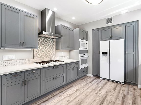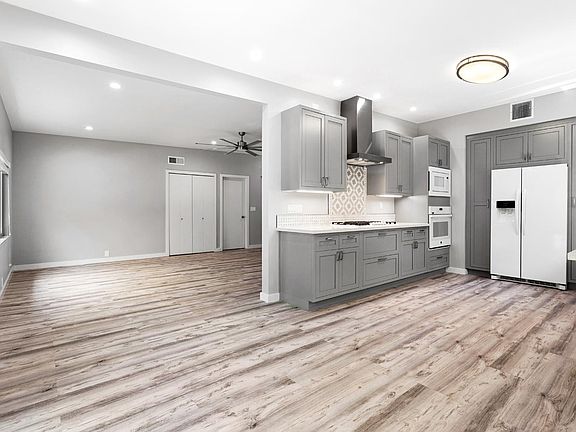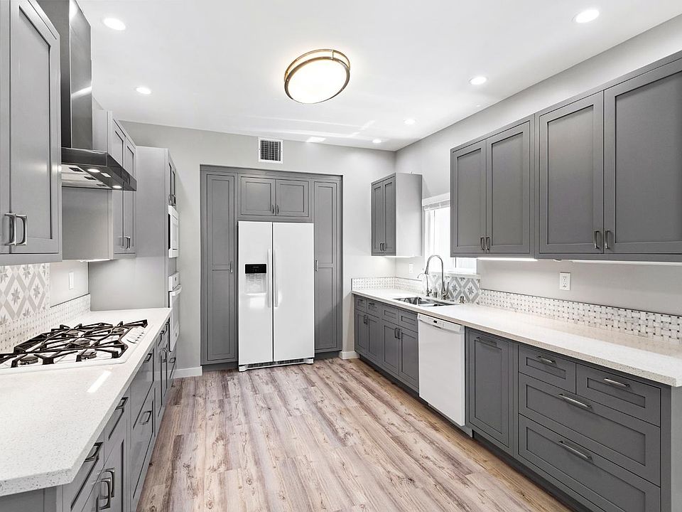Like a brand new home, complete interior remodel with many high-end custom touches. With carpet-free flooring throughout, no room went untouched. Large master bedroom with slider to the backyard, ensuite bath with gorgeous cabinets, lighting, and stunning glass-enclosed bathtub/shower room. Two more bedrooms with lots of storage, solid dual-pane windows. Both share the hall bath, also re-done with more beautiful cabinets, dual sinks and faucets. The chef's kitchen got the same custom treatment with all new cabinets, appliances, lighting, touchless water fixtures, and more. Window blinds throughout. Two-car garage with tons of storage, washer/dryer, sectional door with opener, and wired for your Electric Vehicles. Entertaining-friendly backyard with lots of built-in seating, natural gas firepit and BBQ with food-prep counter and sink. Fruit trees, grassy section, and an herb garden adorn their corner of this lovely outdoor area. Upgraded electric panel and plumbing. Filtration system located in the garage provides purified water to the kitchen. New paint inside and out, rain-gutters too. Trash and gardener paid.