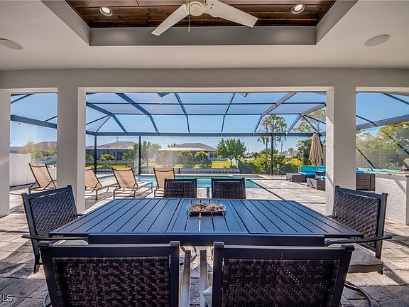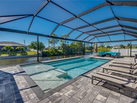 This 4 Bedroom, 3 Bath, 2 Car Garage home comes with all the Bells and Whistles. Home is just over 2,200 sq ft under air with a total of 4,700 sq ft when you include your huge lanai with an oversized Heated pool and spa and located on a freshwater canal! The Kitchen has been decked out with 42" All Wood Cabinets, Stainless Steel Appliances, quartz Countertops, and a huge Kitchen Island with waterfall edge.. Designer tile flooring installed throughout. This home has a Paver driveway, Paver pool deck, complete landscape package with sprinkler system and flora tan sod. The interior specs are upgraded tray ceilings in living area, 8' doors, 5 1/4" Baseboard with 3 1/4" Casings, Soffit lighting outside, Frameless Glass Shower Enclosure, Stand Alone tub in the master bath, Trey Ceilings in the living room and master bedroom, pendant lighting in the kitchen, pool bath, tile roof, Camera System, Surround Sound, Outdoor Kitchen, Fenced in yard, mini split AC in garage, the works! This home is located in the desirable SW section of Cape Coral and comes Completely Furnished/Turn Key - Patio Furniture, Bikes, Kayaks, TV's, what you see is what you get!