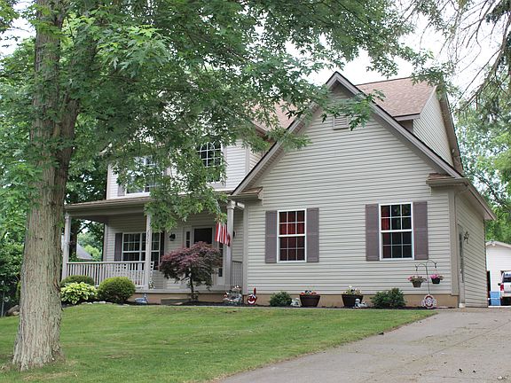 Home has a open kitchen that looks into dining area & family room, Large walk in closet for storage off family room, gas fireplace. Half bath & access to partially finished Basement & Awesome home office with outside access. 2 story foyer leads to Living room and beautiful oak staircase to the second floor. Second floor offers a vaulted ceilings master suite with jetted garden tub, separate shower 2 sinks. Walk in closet. Two other bedrooms, 1 bath. Laundry room next to bedroom. Main Floor home office is 22 X 20. Garage has room for 2 cars and we extended the back for work bench. Man Shed with electric was built behind garage 2 more sheds at rear of property to store garden/yard tools. Lot is 60 Frontage and 300 deep. Half or the back yard is fenced in for pets / garden
