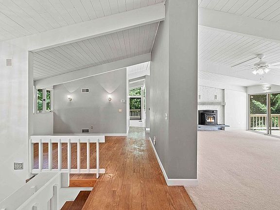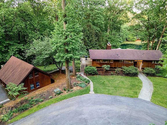 Live authentically. Wood Duck. Delightful deck house perched atop a forested knoll with a spectacular view. Private sanctuary on 8+ acres. Versatile floor plan, open spaces, and tasteful updates. Treasured abode. Inviting kitchen and stone fireplace exudes warmth and comfort. Expansive double deck terrace ideal for al fresco dining overlooking your glistening pond. Lower level has glass walls and is set on the property to get maximum light. Owner's suite on the main entry level, remaining bedrooms downstairs. Additional detached garage/workshop inspires countless opportunities and activities. Unfinished loft on second floor. Magical summer evenings on your terraces to watch the fiery colors of the setting sun with sweeping panoramic views of Tufton Farms. Powerful rock outcroppings with meandering stream for even more exploring in the yard. Truly lives like your own park. Picturesque natural setting. Hiking, fishing, canoeing, and birdwatching right outside your door. Commune with nature. Incomparable setting. Book a field trip and be wowed. The art of uniting human and home.