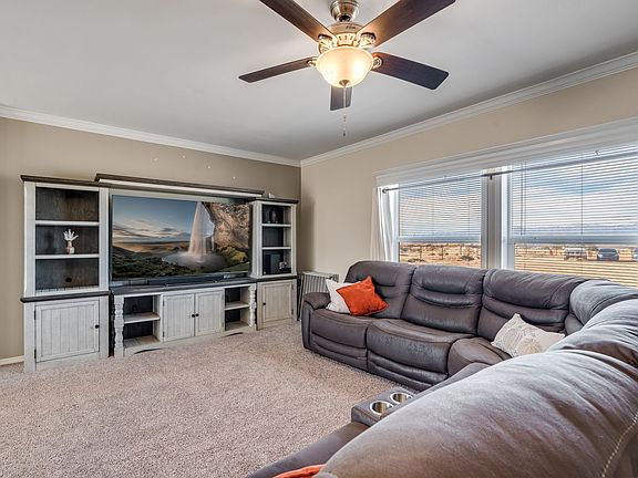 Enjoy wide open views of the Española Valley from this elevated .93-acre property. This 2020 modular home offers a comfortable layout with an open living, dining, and kitchen area designed for everyday living and entertaining. The kitchen features abundant cabinet space, an oversized pantry, and like-new appliances. A separate utility room provides additional storage and access to the backyard.