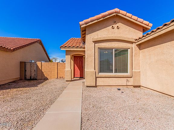 Introducing an extraordinary opportunity nestled within the prestigious Arizona Grande community! This impeccably maintained home is ready to welcome you with its recent paint job and stunning 20 x 20 tile flooring that effortlessly enhances its open-concept living and dining areas, all new Bedroom floors . Boasting 3 spacious bedrooms and 2 bathrooms, this residence offers the epitome living. The kitchen shines with stainless steel appliances, including a refrigerator, and a washer and dryer for your convenience. Step outside onto the covered patio and be greeted by breathtaking mountain views, perfectly complemented by the serene green/wash space behind. With an expansive side yard ready to accommodate an RV gate, plus easy access to two nearby freeways, this is a rare opportunity not to be missed! Plus, enjoy recent upgrades including a brand new AC unit installed in 2019 with further enhancements in 2023, updated windows in 2020, a new hot water heater in September 2023, a refrigerator upgrade in 2023, and a comprehensive whole-home water filtration system installed in 2020.