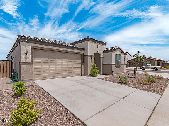Newly built 2023 home with an open concept design with luxurious upgrades. The spacious living area flows into a gourmet kitchen with quartz countertops and a large island. Enhanced features include 9-foot ceilings and upgraded door heights for a larger feel. Elegant tile flooring in all rooms and plantation shutters for sophistication while maintaining privacy. The home also boasts an Ecobee smart thermostat, along with upgraded foam insulation for high energy efficiency. A water softener and reverse osmosis system guarantee clean, quality water. The extended patio expands into the low-maintenance backyard landscaped with pavers, making it perfect for gatherings or quiet evenings. This home with all functional upgrades, is ready to welcome its new owners.