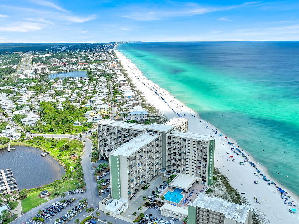 grill-picnic area, basketball, a fitness center and more. Boating amenities abound... a boat ramp, boat slips, boat/trailer parking, a fishing pier, and kayaking. This premier location is three miles from the boutiques and restaurants of 30a and a short distance to Publix. Shopping at Pier Park is nearby. This sun filled penthouse condo is being sold fully furnished, features 2 balconies, and is conveniently located near the elevator. The living area, kitchen and half bath are positioned on the first level, and both bedrooms and two full baths are upstairs. With new furnishings and window treatments, the vibe is fresh with a coastal feeling. This is a great investment opportunity offering an annual gross rental projection of $48,000-$52,000!