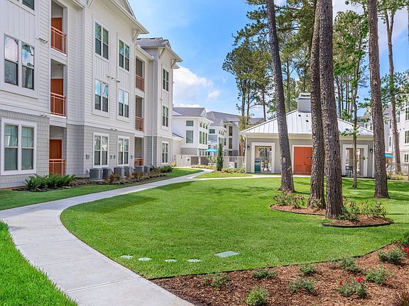 - Exterior features: *In Select Units, 9-Ft. Ceilings, Business Center, Convenient Built-in Desks, Designer Breakfast Bar, EV Charging Station, Package Receiving, Parcel Lockers, Pet Park, Pet Washing Station, Plush Carpeted Floors & Luxury Wood-Inspired Floor, Private Fenced Yards*, Private Yoga Studio with Spin Bikes & Fitness On-D, Reserved Guest Parking, Smart Programmable Thermostats, TV Lounge, USB Ports in Kitchen & Bedrooms