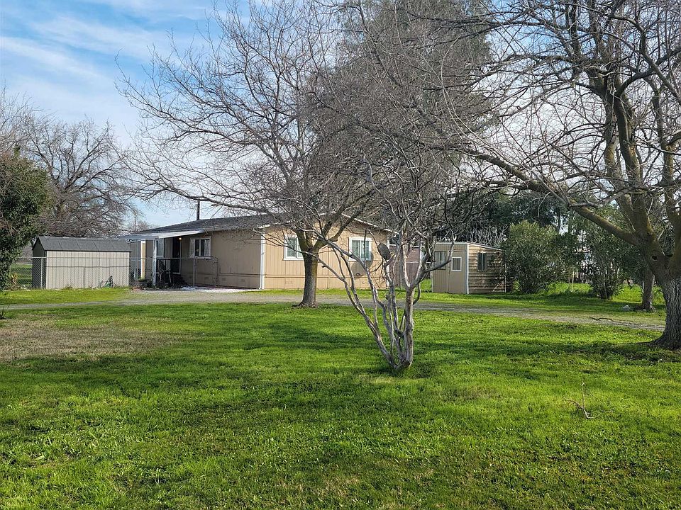3 Bedroom two bath on a large corner lot in a peaceful country setting, this ranch-style manufactured home is located mid-way between Corning and Red Bluff. Easy access to Hwy 99w or interstate 5 makes shopping and entertainment just minutes away. Spacious living room with vaulted ceilings. Dining area off of kitchen. Large master bedroom with full master bathroom. Two additional bedrooms with built in closets. Laundry room off of kitchen and back yard access. Fresh paint and flooring throughout the home. Central heat and air with an additional evaporative cooler. This manufactured home has a permanent foundation. Multiple out buildings for storage. This property comes with two lots. Fresh paint and flooring throughout the home.