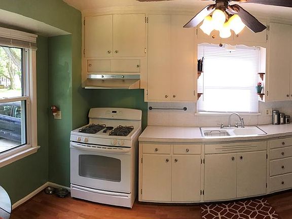 Nothing to do here but move in. Replacement windows, remodeled bath, new water heater, newer paint and floor coverings. Updated electrical, new garage door and new ceiling fans. Gas range, refrigerator, washer and dryer all stay. Full basement with large sink and extra cabinets. Garage with workbench. Covered porch off garage. Great value great price and easy to show.