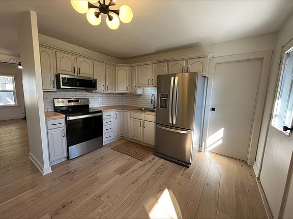 A House Real Estate Project, completed remodeled 3 bedroom, 1 bath property. New dimensional shingled roof and all new decking, new 6 inch gutters, new front windows, new front door, new front porch, new privacy fence, a lot of new drywall and ceilings, new shiplap, new hardwood wide plank flooring, new carpet, all new lighting, new outlets and switches, completely remodeled bath done to the studs, tiled shower, new tub, new toilet, new vanity, all new plumbing fixtures, moved washer and dryer, opened up mudroom to kitchen, new custom built cubbies and bench, custom featured walls/ Newly remodeled kitchen, new backsplash subway tiles, new microwave, new stove, new butcher block countertops. All new custom trim and casing throughout. Framed